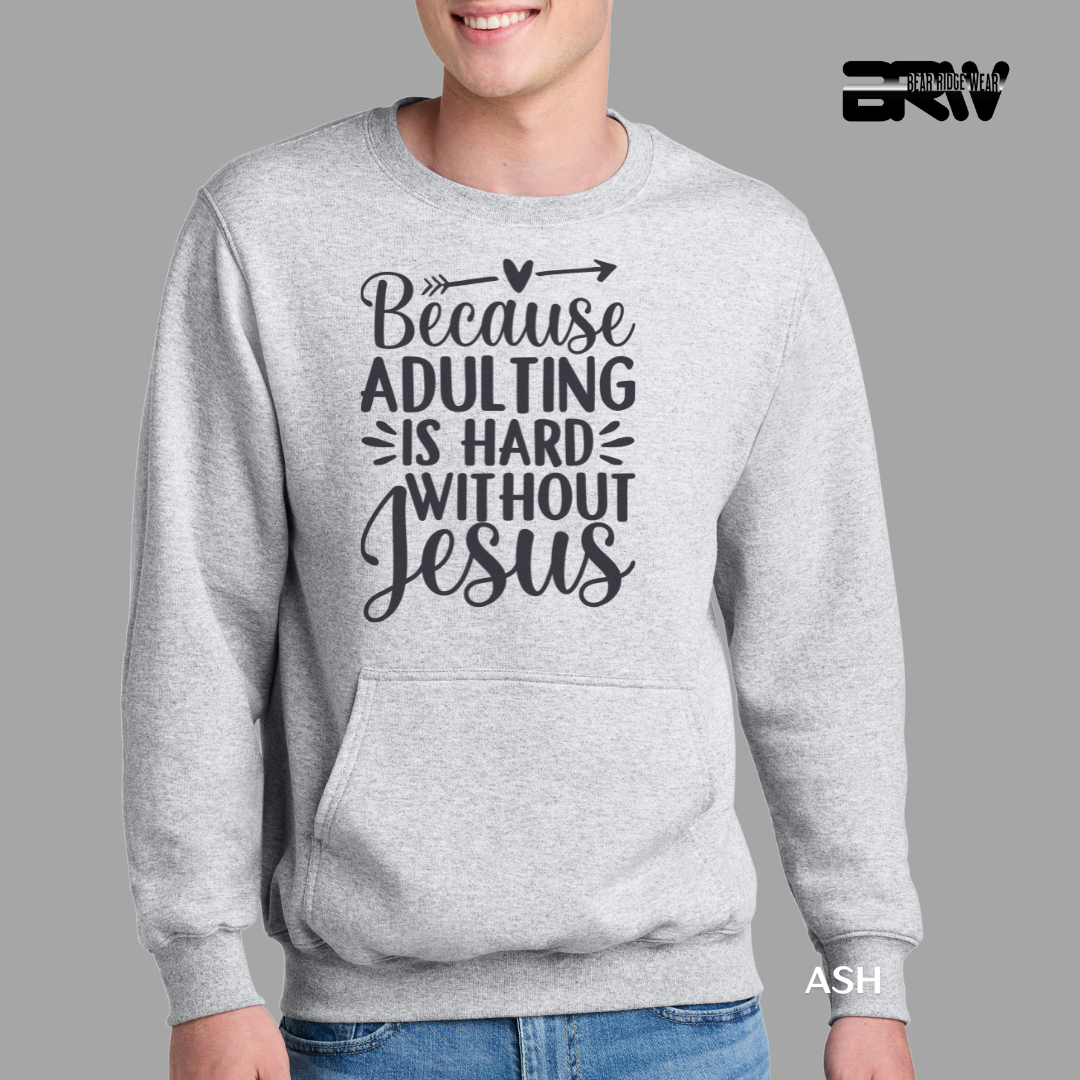 'Adulting Is Hard Without Jesus' Faith Kangaroo Pocket Crewneck